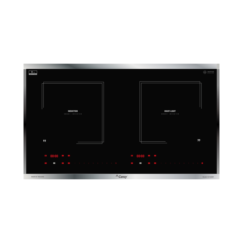 Bếp từ Canzy CZ-TL55DT gây ấn tượng mạnh với thiết kế bếp đôi hỗn hợp 1 từ – 1 hồng ngoại, mang đến sự linh hoạt tối đa trong quá trình nấu nướng.
