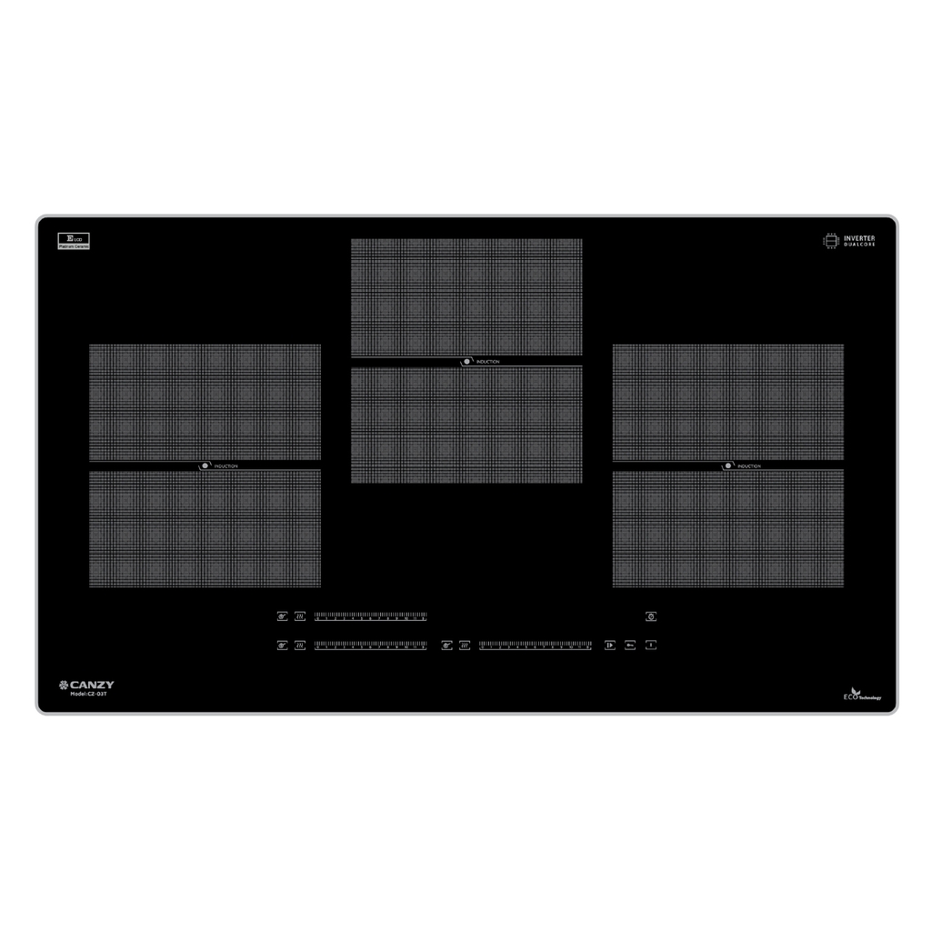 Bếp từ 3 vùng nấu CZ-03T là sản phẩm hoàn hảo dành cho những căn bếp hiện đại. Sở hữu mặt kính ELCD Platinum ceramic sang trọng, với hiệu ứng kính đen có chấm xước tinh tế tại vùng nấu, bếp mang lại vẻ đẹp thanh lịch và dễ dàng vệ sinh sau mỗi lần sử dụng. Mặt kính có bo viền, không chỉ bảo vệ bếp mà còn tăng cường tính thẩm mỹ, tạo điểm nhấn nổi bật cho không gian bếp của bạn.