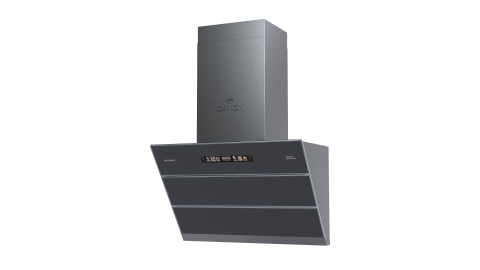 Chiếc máy hút mùi có thiết kế độc lập, thân inox sơn tĩnh điện xám đậm kết hợp kính mờ tạo cảm giác như một tác phẩm nội thất cao cấp. Đường cong thân máy mềm mại, viền kính inox nổi bật khiến bất kỳ ai bước vào bếp cũng phải chú ý.